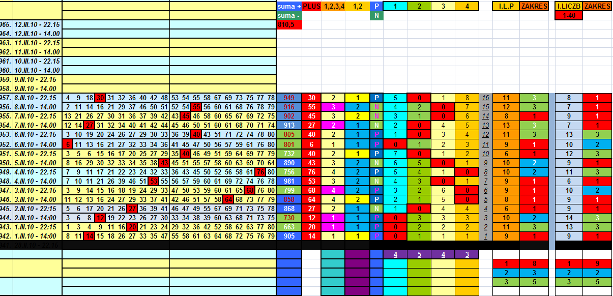 2010-03-09 (00:45) sindbadData rejestracji: 2008-10-13 Ilość postów: 20532 | wpis nr 296 417 [ CZCIONKA MONOSPACE ] Ja kierowałem się dziewiątym dniem miesiąca wykluczając powtórkę drugiego zakresu, czyli typ 3,2: 1 = 9 2 = 12..? 3 = 12..? 4 = 4 Zakres numer 4 ma dobre notowania, ale nie lubi biegać dziewiątego dnia miesiąca no! Po zakresie 2: 2, 1 = 63 2, 2 = 69 2, 3 = 74 2, 4 = 80..? Po zakresach 3, 2: 3, 2, 1 = 18 3, 2, 2 = 12 3, 2, 3 = 16 3, 2, 4 = 24..? Po zakresach 3, 3, 2: 3, 3, 2, 1 = 6 3, 3, 2, 2 = 4 3, 3, 2, 3 = 6 3, 3, 2, 4 = 7..? Po zakresach 2, 3, 3, 2: 2, 3, 3, 2, 1 = 0 2, 3, 3, 2, 2 = 1 2, 3, 3, 2, 3 = 2 2, 3, 3, 2, 4 = 4..? |