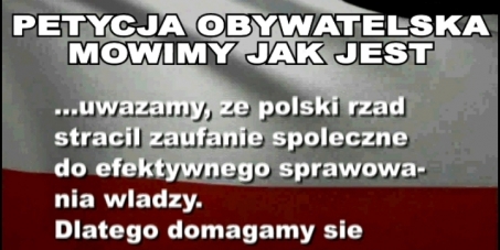 2014-06-24 (01:01) rychferData rejestracji: 2006-06-11 Ilość postów: 1425 | wpis nr 814 144 [ CZCIONKA MONOSPACE ] Dlaczego ta sprawa jest istotna My Polacy - Domagamy się powołania niezależnej komisji do przesłuchania wszystkich osób zamieszanych w polską aferę podsłuchową, ukarania winnych złamania konstytucji RP i wyjaśnienia nam wszystkich okoliczności tej sprawy. Z uwagi na powiązanie premiera polskiego rządu z propozycją złamania konstytucji RP ujawnioną w nagraniach – uważamy,że polski rząd stracił zaufanie społeczne do efektywnego sprawowania władzy. Dlatego domagamy się dymisji Premiera Donalda Tuska i wyłonienia nowego rządu. Niech Bóg błogosławi Polskę i jej naród w tych trudnych dla kraju chwilach. http://youtu.be/3Wuoyr5915s https://secure.avaaz.org/pl/petition/Do_Sejmu_Rzeczypospolitej_Polskiej_o_dymisje_Premiera_Donalda_Tuska_i_wylonienie_nowego_rzadu/?cMSerdb |