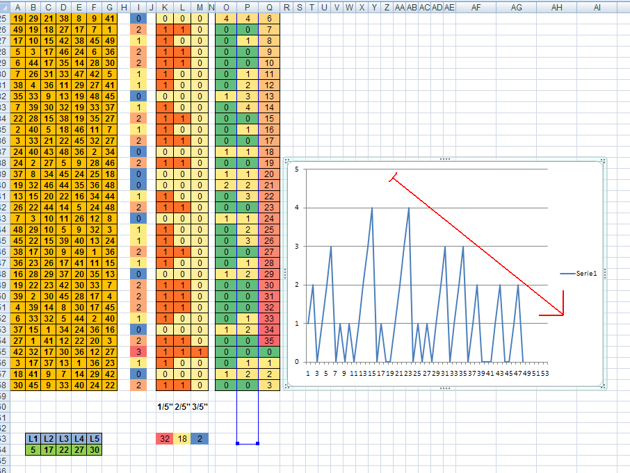 2011-05-10 (02:40) KurekData rejestracji: 2010-10-20 Ilość postów: 950 | wpis nr 423 305 [ CZCIONKA MONOSPACE ] Spoke, Najwięcej odstępów w grupach od 0 do 3, zwykle 20,21 liczb Odstępy 4,5,6,7 i 10 liczb to zwykle 3 liczby na przedział, reszta,wyższe przedziały po 2,1 liczb. Dotyczy gry w której liczony jest bonus (7 liczb losowanych) i przedziałów ze 100 losowań. Nie polecam Excela do takich map jak mówię, za trudno, za wolno nawet przy użycia Basica. |