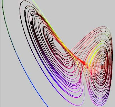 2015-07-21 (15:33) KajetanData rejestracji: 2015-04-16 Ilość postów: 276 | wpis nr 919 123 [ CZCIONKA MONOSPACE ] Nie czekając na podziękowanie od Mariusza sam zacząłem nieco dłubać przy przy budowie tego modelu atraktora by się pogapić na ten przemieszczający się punkt w przestrzeni. Oto co mi wyszło. Teraz widzę mój błąd. Ten program budujący atraktory ma za dużą bazę danych i przemieszczający się jeden punkt losowy widzimy jako jedną linię. Punkt przy punkcie tworzy linię ciągłą to logiczne. Bazę losowań muszę więc zmniejszyć zdecydowanie , myślę że wystarczy do 100 ostatnich losowań. Poza tym muszę użyć aż 80 barw by każda pierwsza wylosowana różniła się w trajektorii czasoprzestrzennej od tych pozostałych. No ,Mariusz ,najważniejsze to kawka i pomysł. Bo oleju w głowie to chyba nam nie brakuje |