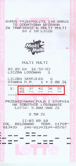 2020-05-03 (10:58) perkunData rejestracji: 2009-02-24 Ilość postów: 7212 | wpis nr 1 289 944 [ CZCIONKA MONOSPACE ] Witam Zostałem "wywołany do tablicy" bo od 15 lat nic nie wygrałem? Przyznaję w polskich loteriach nie trafiałem jeszcze głównej kumulacji i idzie mi ciężko jak po grudzie - by osiągnąć ten cel - wygrane są nieduże to fakt Moje najstarsze - zachowane trafienie czegokolwiek i młodsze - bardziej aktualne Pracuję nad tym żeby to poprawić bo dużo wyższe wygrane można było osiągać poza granicami naszego kraju - aktualnie dzięki 2 rządom - poprzednim i aktualnym jest to niemożliwe Także jak widać moje osiągnięcia są na tyle słabe, że nie należy mnie naśladować bo po co ? Pozdrawiam |